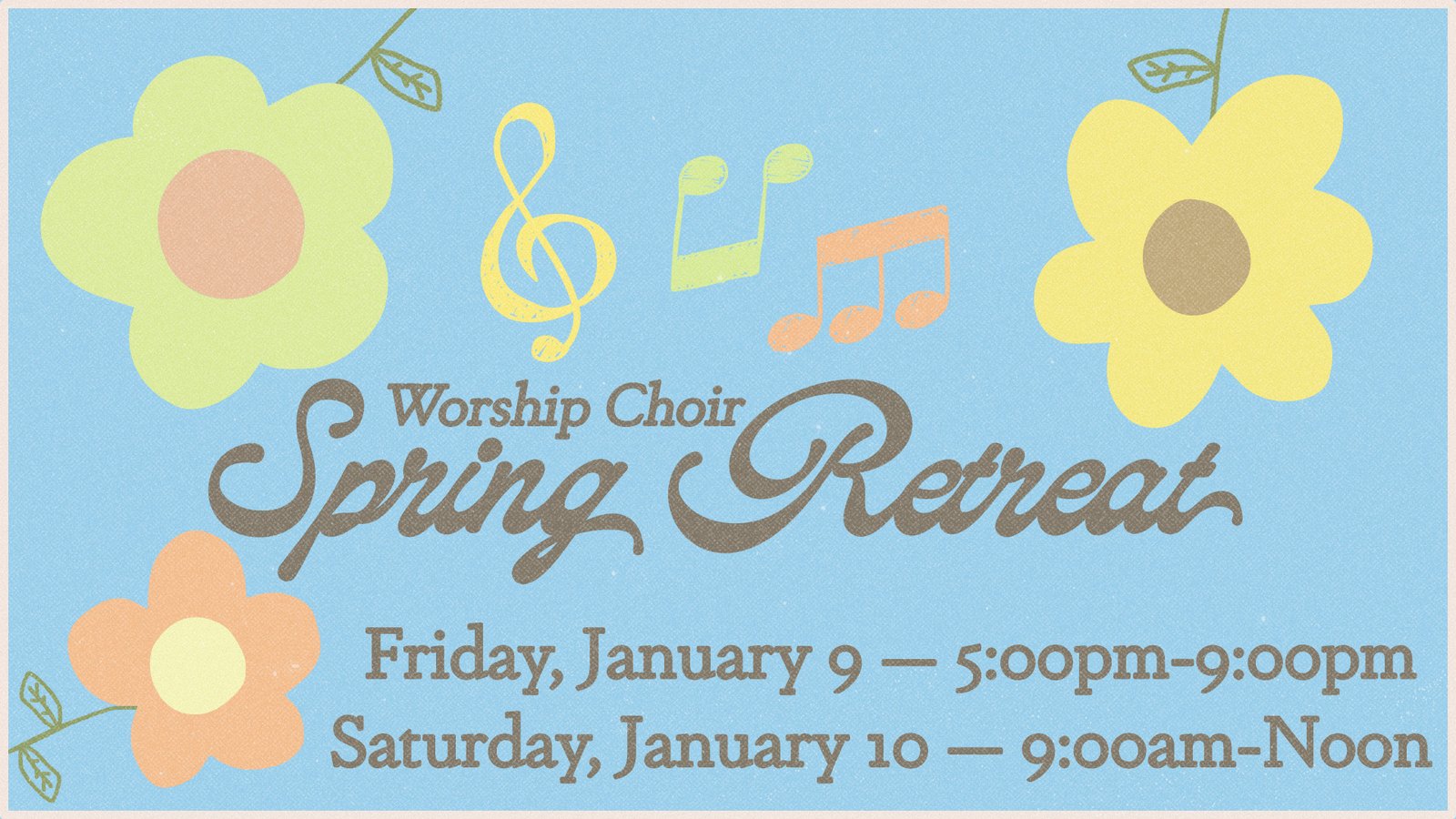 Come join the FBC Worship Choir as we kick-off our Spring season with our Annual 2-day Retreat. This will be a time where we gather as a group to read-through and prepare our music for this Spring season, look at our Easter Cantata and special Easter Experience, and fellowship with each other as we lift praises to the Lord!